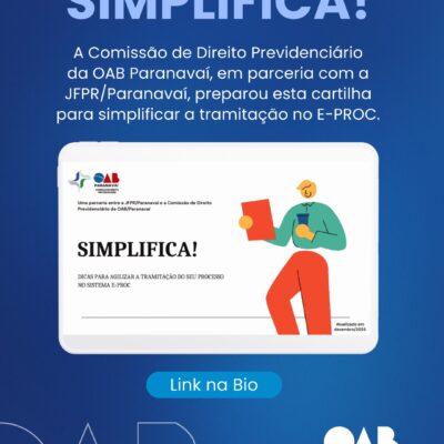 A Comissão de Direito Previdenciário da OAB Paranavaí, em parceria com a JFPR, Subseção Judiciária de Paranavaí, preparou uma cartilha com orientações práticas para agilizar a tramitação dos processos no sistema E-PROC. O material reúne dicas objetivas sobre:✔️ Tramitação ágil das aposentadorias✔️ Petição inicial e documentos essenciais✔️ Movimentações específicas✔️ Automações...