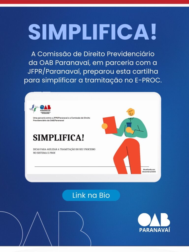 A Comissão de Direito Previdenciário da OAB Paranavaí, em parceria com a JFPR, Subseção Judiciária de Paranavaí, preparou uma cartilha com orientações práticas para agilizar a tramitação dos processos no sistema E-PROC.